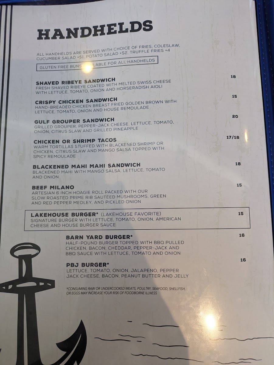 Moving on to the handhelds, the menu boasts a variety of flavorful options. Their signature Shaved Ribeye Sandwich is a hearty delight, featuring tender ribeye paired with melted Swiss, fresh lettuce, and a special horseradish aioli. If seafood is more your style, the Gulf Grouper Sandwich is a standout, harmonizing grilled grouper with pepper jack cheese and refreshing toppings.